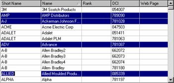 Using the example in Figure 1, click on AMP, Ctrl-click on A-J, Ctrl-click on ADV, Ctrl-click on ALLIED. Only those lines that you selected are highlighted.