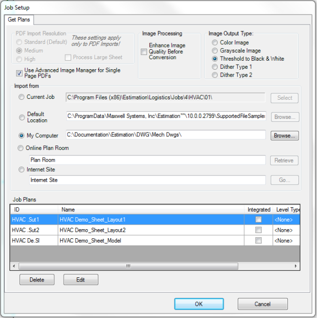 Digital Takeoff can perform various conversions on images to make them easier to work with. These options each have advantages and disadvantages, therefore you may wish to make different selections for each sheet you import.