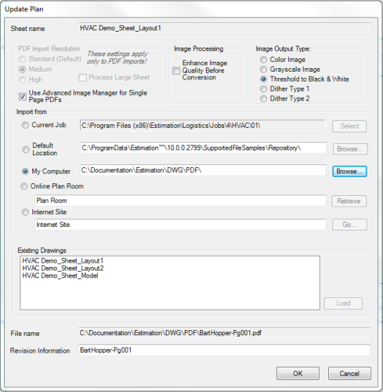 Once you load your sheet, the File Name and Revision Information fields at the bottom of the Update Pan dialog are populated. These fields can be edited, if necessary.