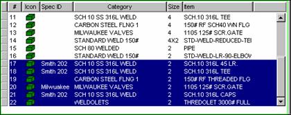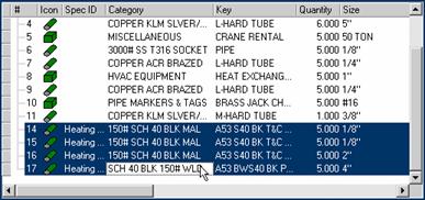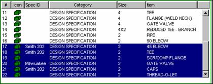 Select the items. Figure 1 is an example showing item sequence numbers 14 through 17 which were taken off without a Design Specification active (there is no specification indicated in the Spec Id field).