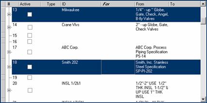 Select the Design Specifications you want to apply. The scroll bar to the right of the display can be used to review the file. Figure 2 is an example of two Design Specifications selected (in this example spec 13 was selected first, then Ctrl-click with a mouse was used to select spec 18 as well).